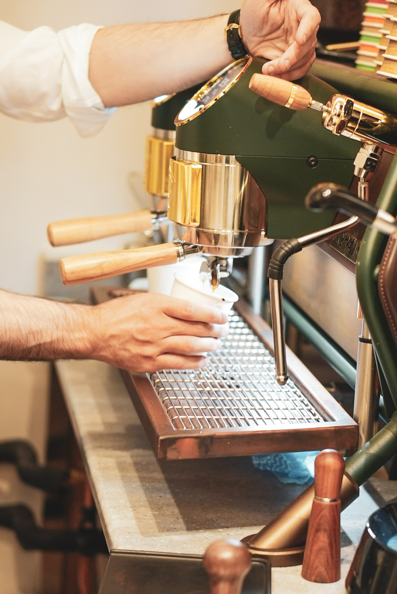 We serve beans from Monmouth Coffee Company, prepared by trained baristas who care about craft. Every cup is made with attention and warmth.